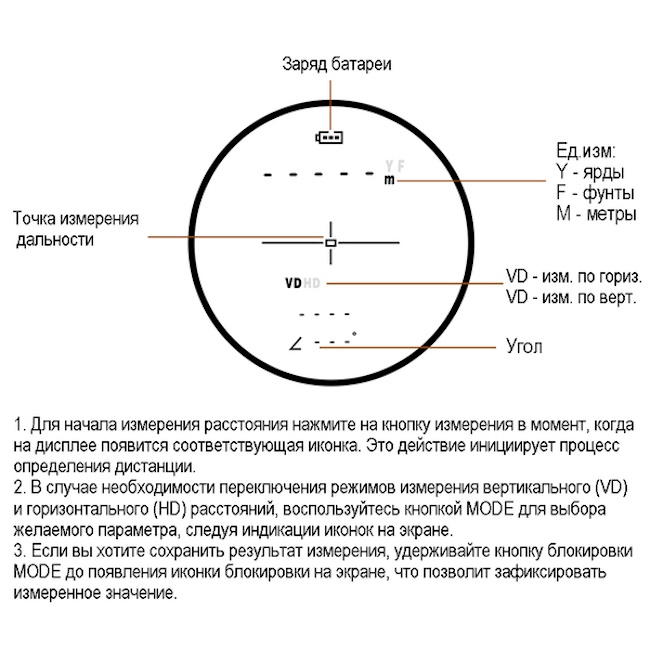 Встроенный угломер для точного определения углов возвышения и прямых дистанций до цели при стрельбе под наклоном