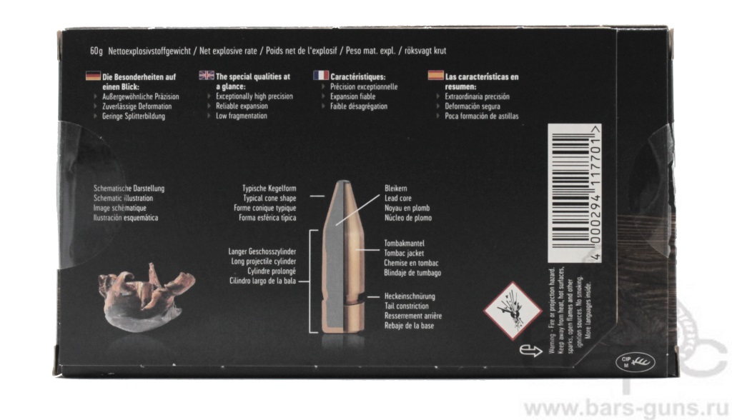 Сохранение пули, расширяющейся внутри цели и образующей выходное отверстие, является еще одним ключевым фактором эффективности KEGELSPITZ. Это гарантирует быструю потерю животным крови и, как следствие, более быстрое и гуманное завершение охоты. Выбирая пулю KEGELSPITZ, вы делаете ставку на точность, контролируемое расширение и надежный результат на каждой охоте.