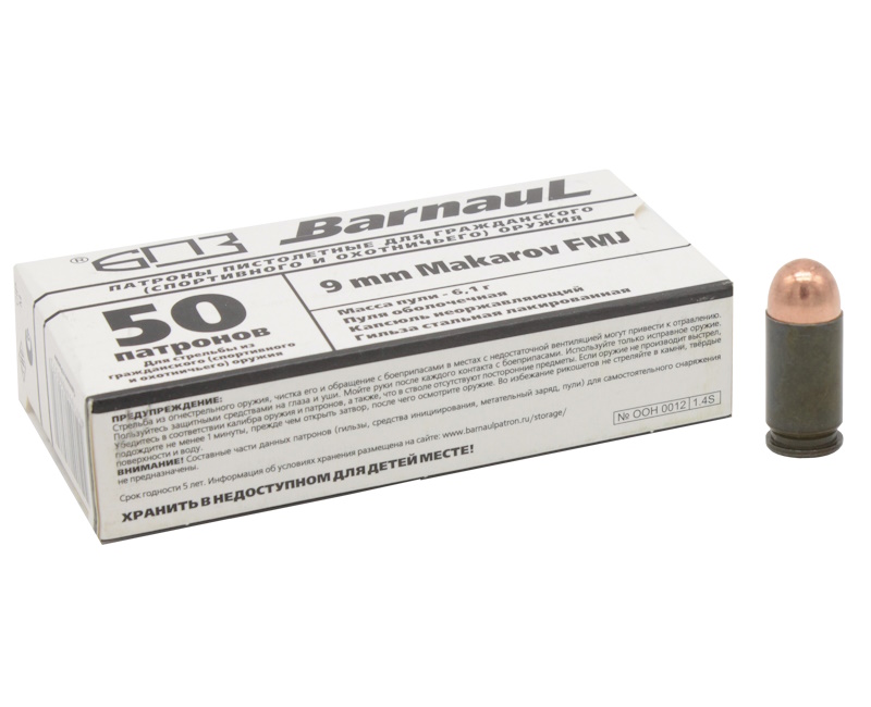 Тип пули FMJ (Full Metal Jacket) — полностью оболочечная пуля