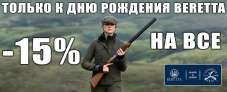 Скидка 15% на любой ассортимент фирменных товаров Beretta - оружие, стрелковая одежда и аксессуары, сумки, наушники, очки, чехлы, перчатки, кепки, футболки, толстовки....